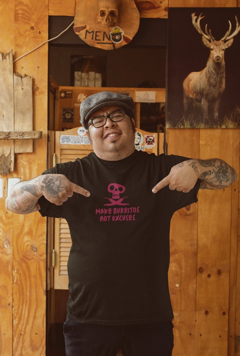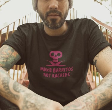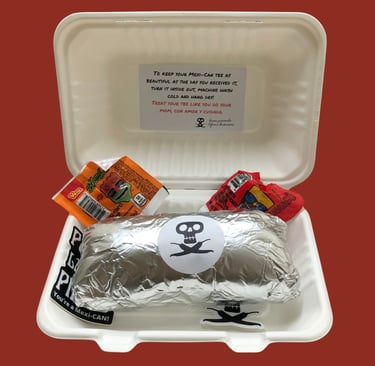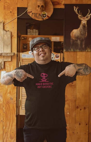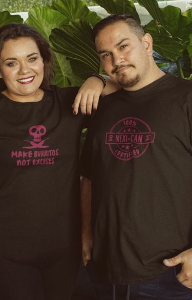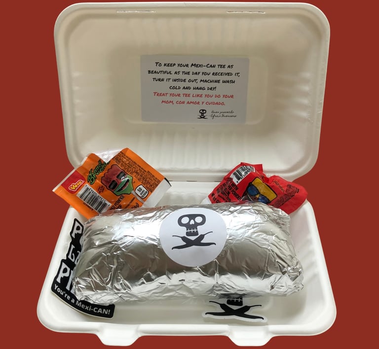 We celebrate our culture with humor and heart. Every shirt is wrapped like a burrito — because we believe our heritage should be treated like the treasure it is: handmade, flavorful, and proudly ours.