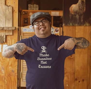 We celebrate cultura with humor and heart. Every shirt is wrapped like a burrito — because our heritage is handmade, flavorful, and proudly ours.
